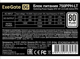 Блок питания Exegate 750PPH-LT EX292341RUS 750W 80 Plus (ATX, APFC, КПД 82проц. (80 Plus), 12cm fan, 24pin, 2x(4+4)pin, 4xPCI-E, 8xSATA)