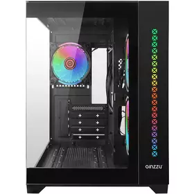 Корпус Ginzzu V390 черный RGB подсветка, контроллер CRC6, 3* 12R6 Fan 12см RGB закаленное стекло 1*USB 3.0,1*USB 2.0, AU mATX