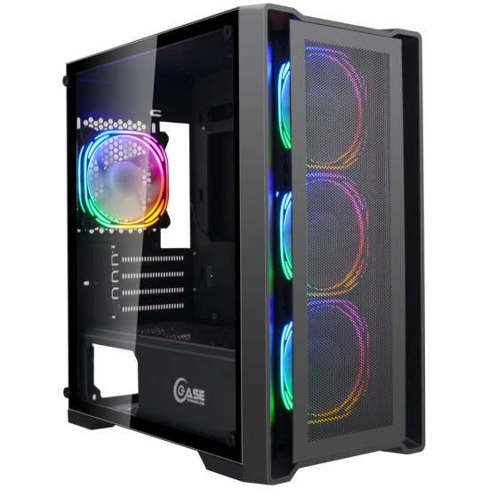 Корпус Powercase Alisio Micro X4B CAMIB-L4, Tempered Glass, 4х 120mm 5-color fan, чёрный, mATX
