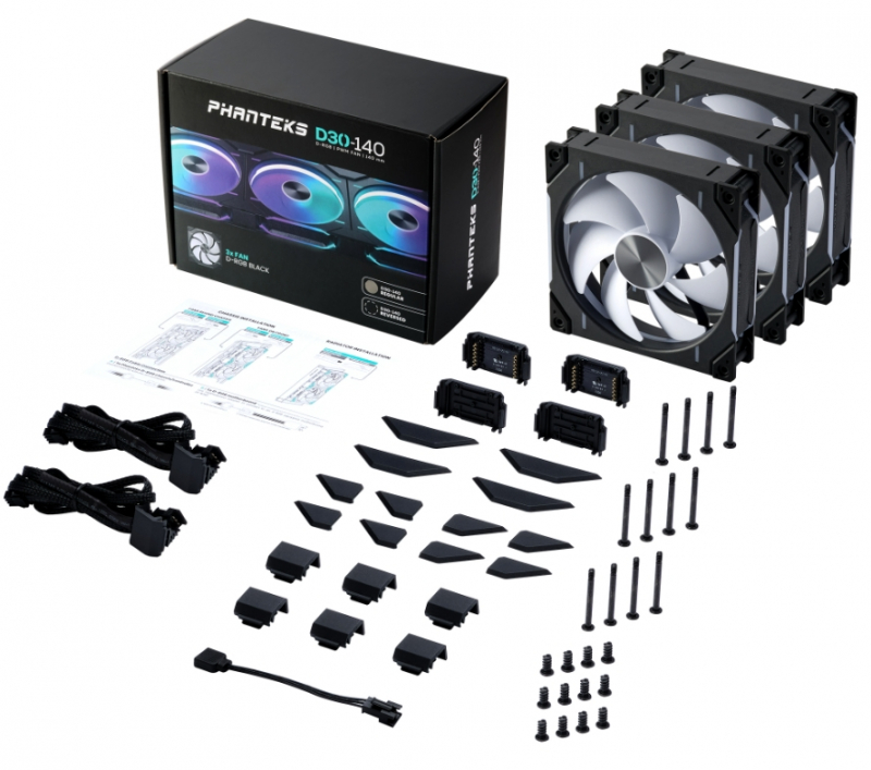 Комплект вентиляторов PHANTEKS D30 DRGB Black (PH-F140D30_DRGB_PWM_BK01_3P) (3шт.) 140x140x30мм (PWM, 250-1800 об/мин, 29.5dBa)