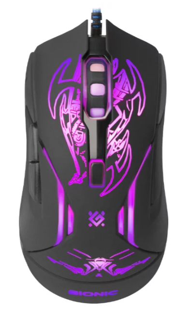 Мышь Defender Bionic GM-250L Gamer Black, 6 кн., 800-3200 dpi, подсветка, оптическая, проводная