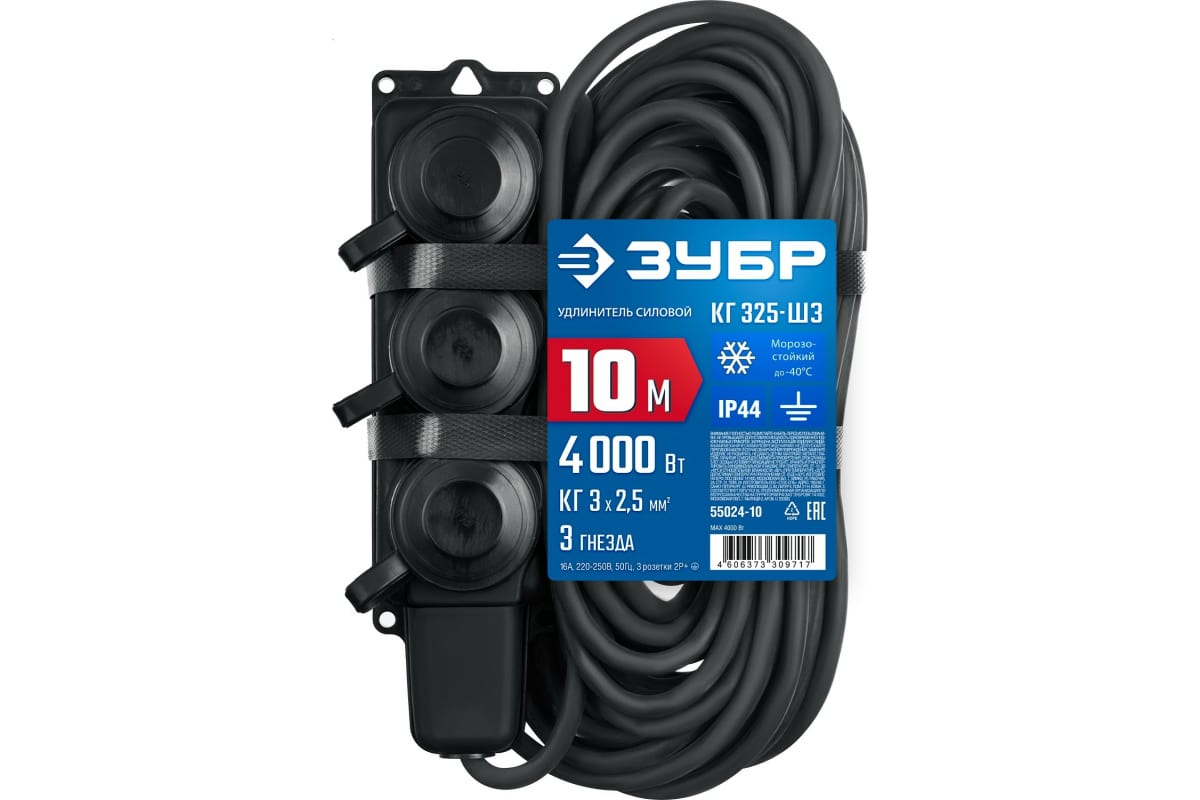 Преимущества ЗУБР 10 м, 4000 Вт, 3 гнезда 55024-10