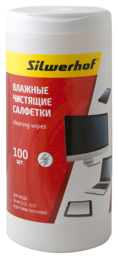 Салфетки Silwerhof для экранов мониторов/плазменных/ЖК телевизоров/ноутбуков туба 100шт влажных