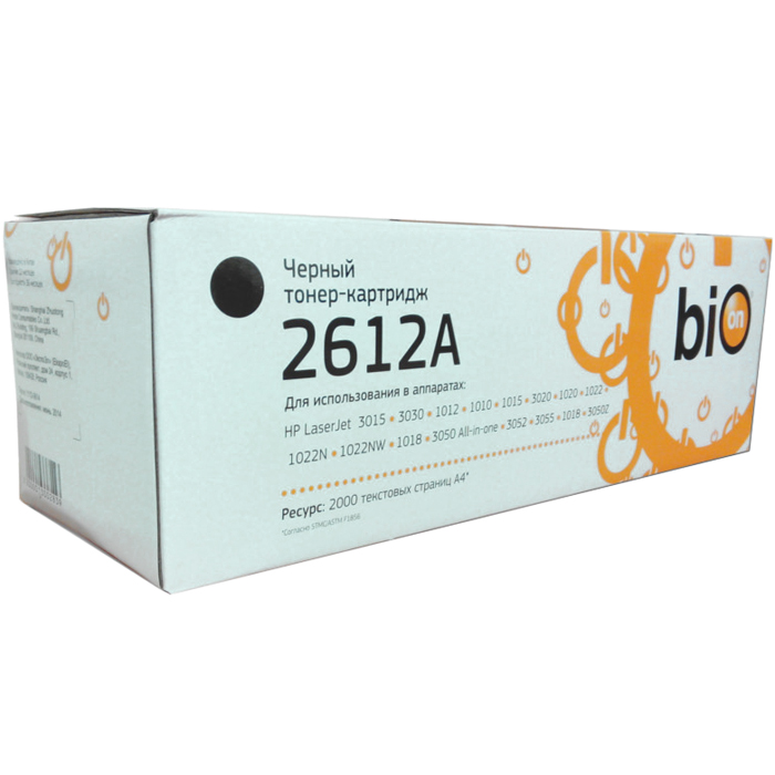 Картридж Bion Q2612A для HP Laser Jet 1010/1012/1015/3015/3020/3030/1319/3050/3052/3055 (2000 стр) Белая коробка