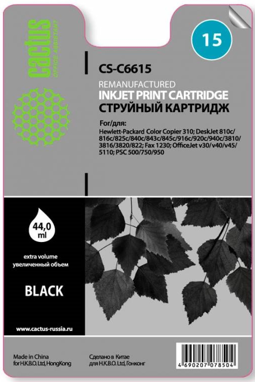 Картридж Cactus C6615N №15 (CS-C6615) для HP DeskJet 810c/816c/825c/840c/843c/845c, черный