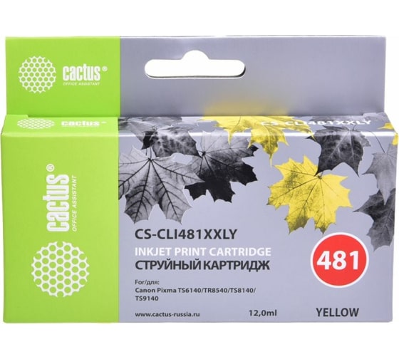 Картридж Cactus (CS-CLI481XXLY) желтый струйный (12мл) для Canon Pixma TR7540/TR8540/TS6140/TS8140