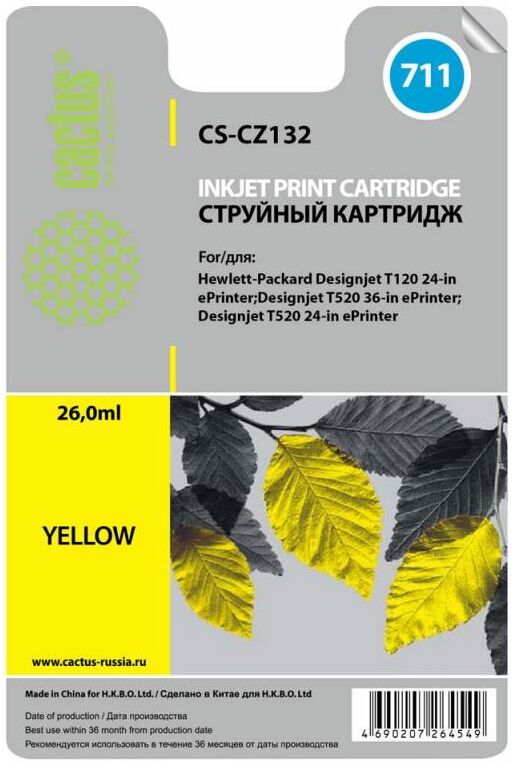 Картридж Cactus CZ132A № 711 (CS-CZ132) для HP Designjet T120/520, жёлтый, с чипом