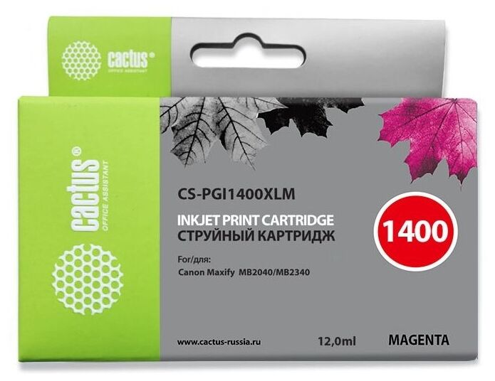 Картридж струйный Cactus CS-PGI1400XLM пурпурный для HP Canon MB2050/MB2350/MB2040/MB2340 (11.5мл)