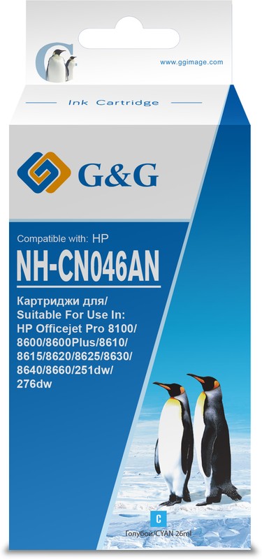 Картридж струйный G&G NH-CN046AN CN046AE голубой (26мл) для HP DJ Pro 8100/8600