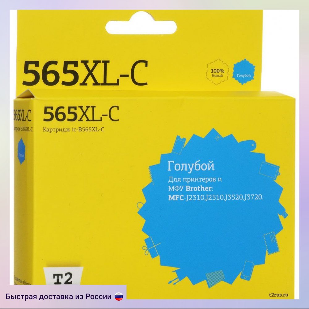 Катридж T2 LC-565XLC (IC-B565XL-C) для Brother MFC-J2310/J2510/J3520/J3720, голубой, с чипом
