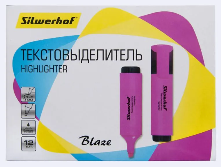 Текстовыделитель Silwerhof Blaze 108036-08 скошенный пиш. наконечник 1-5мм розовый