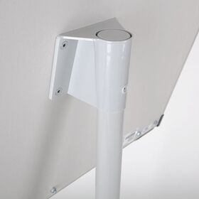 Описание: Сухостираемая доска в алюминиевой рамке. База на 5 колесах (3 c блокировкой). Столб из стали, с регулировкой высоты (175–195 см). Универсальный держатель для блокнотов (регулируемое расстояние между крючками). Полка-желоб на маркеры. Отделка из пластмассы в графитовом цвете.